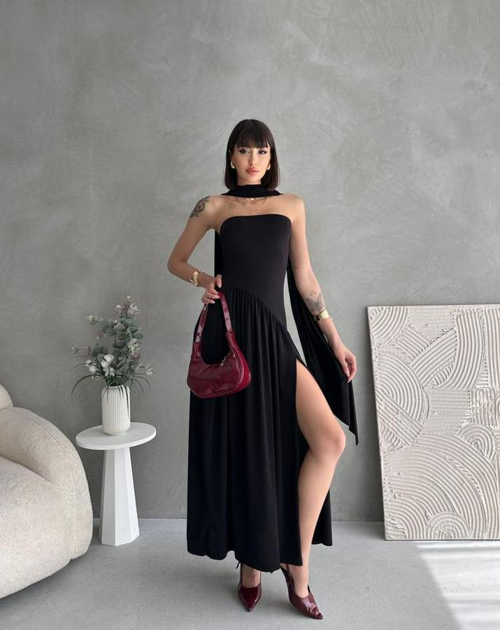 AnasayfaTüm ÜrünlerElbiseKadınboğaz Kolsuz Maxi Boy Kalem Elbise