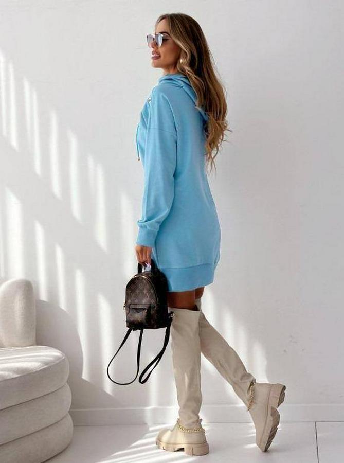 AnasayfaTüm ÜrünlerElbiseKanguru Cep Kapüşonlu Iki Iplik Tunik Elbise