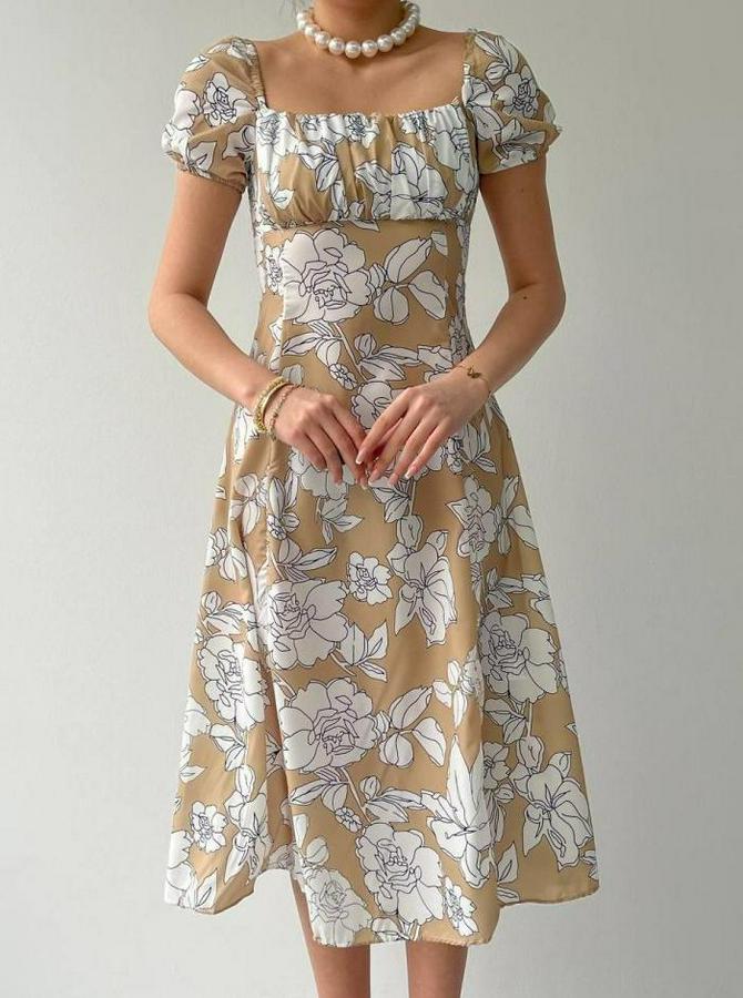AnasayfaTüm ÜrünlerElbiseKare Yaka Çiçekli Elbise