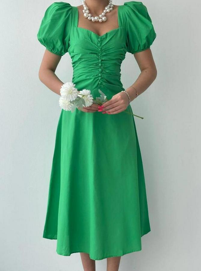 AnasayfaTüm ÜrünlerElbiseKare Yaka Düğmeli Elbise