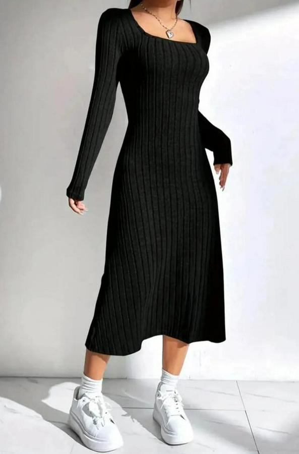 AnasayfaTüm ÜrünlerElbiseKare Yaka Fitilli Kaşkorse Kumaş Midi Boy Elbise