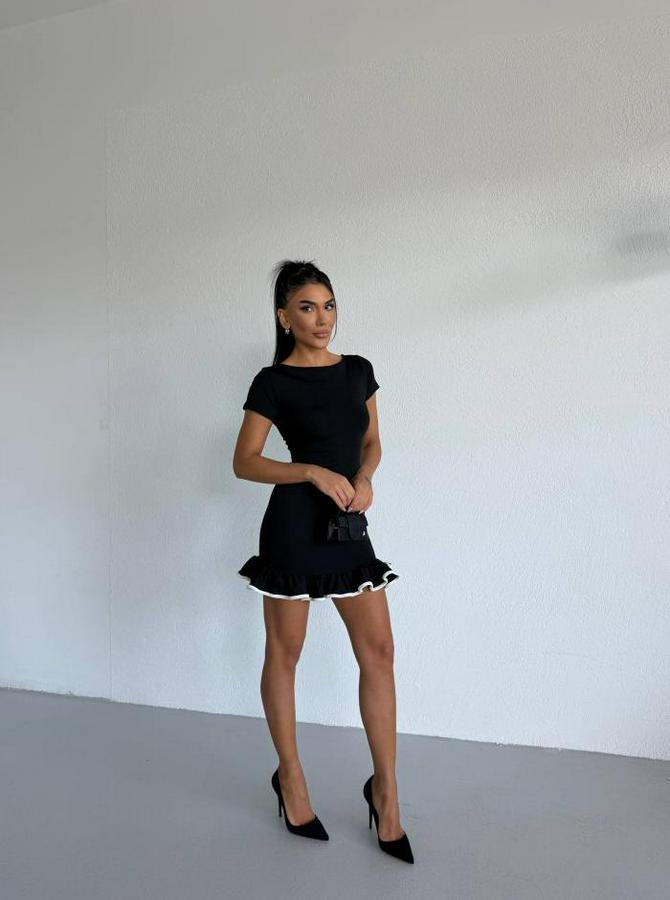 AnasayfaTüm ÜrünlerElbiseKayık Yaka Kısa Kollu Eteği Olan Detay Dalgıç Kumaş Mini Elbise