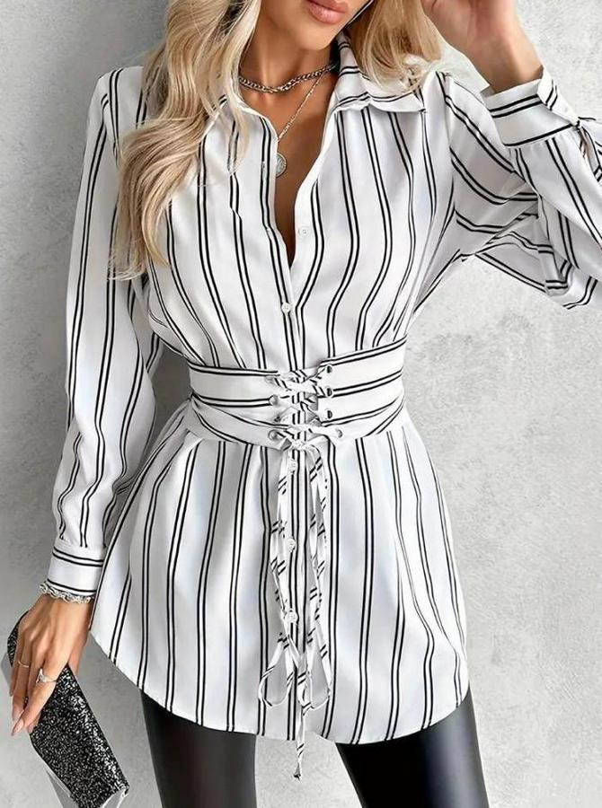Kemer Detaylı Pamuk Polyester Gömlek Elbise