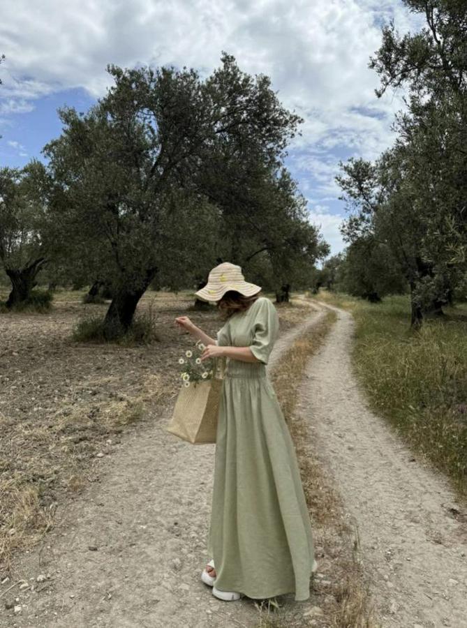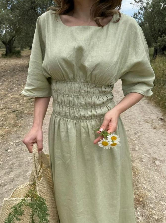 Keten Kısa Kollu Uzun Elbise