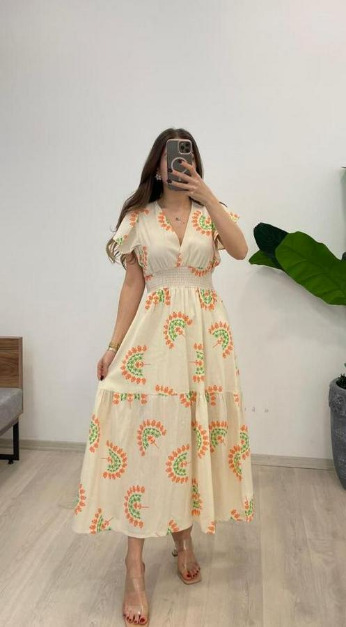 AnasayfaTüm ÜrünlerElbiseKeten Kumaş Beli Gipeli V Yaka Maxi Boy Elbise