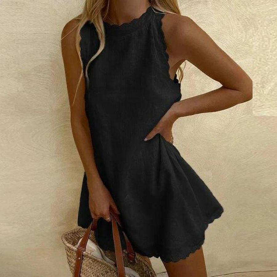 Kadın Keten Kumaş Sıfır Kol Mini Boy Elbise
