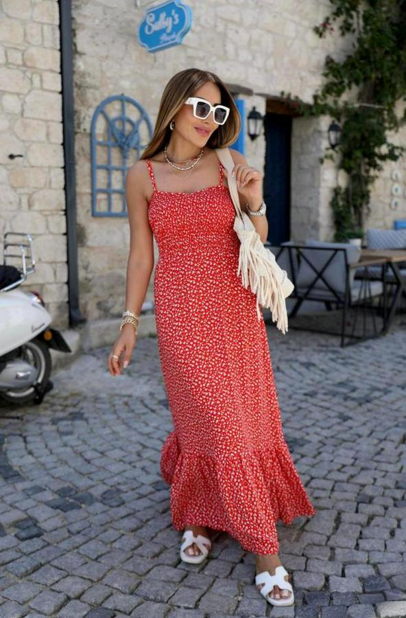 AnasayfaTüm ÜrünlerElbiseKırmızı Eteği Fırfırlı Elbise
