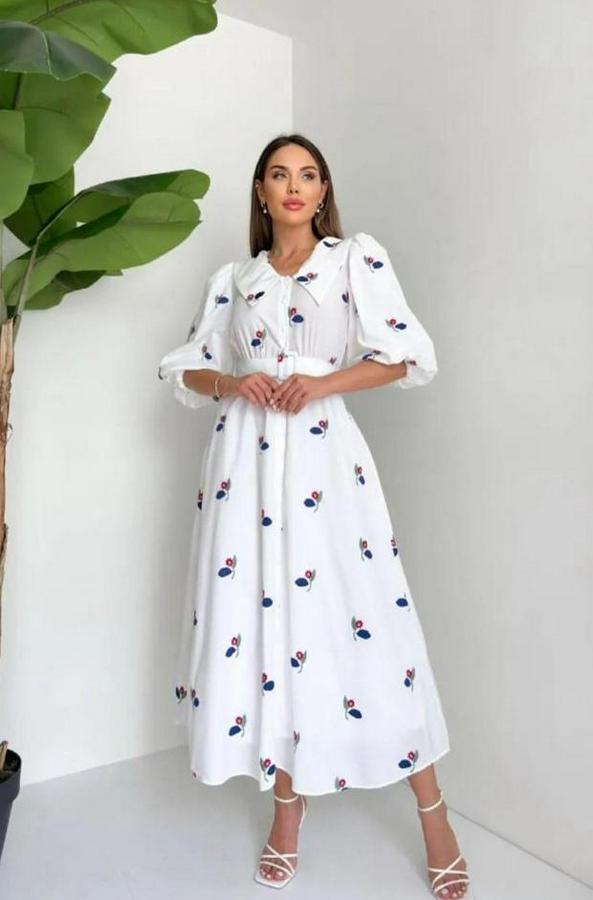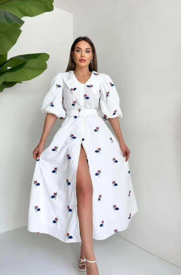 AnasayfaTüm ÜrünlerElbiseKırmızı Yakası Çiçek Motifli Kemerli Elbise