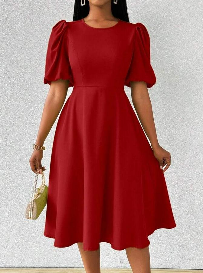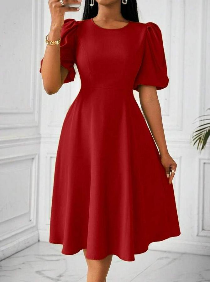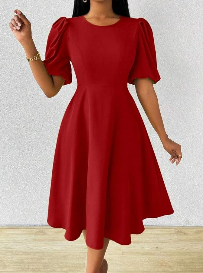Kadın Kısa Balon Kollu Bisiklet Yaka Kiloş Janjan Krep Elbise