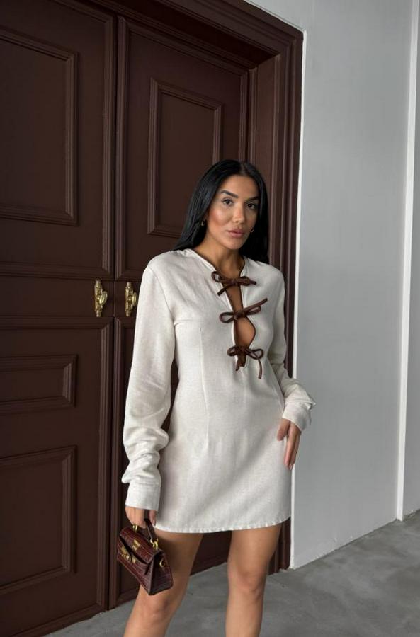 KISA ELBİSE ÖN BİYE BAĞLAMA DETAYLI - Ham