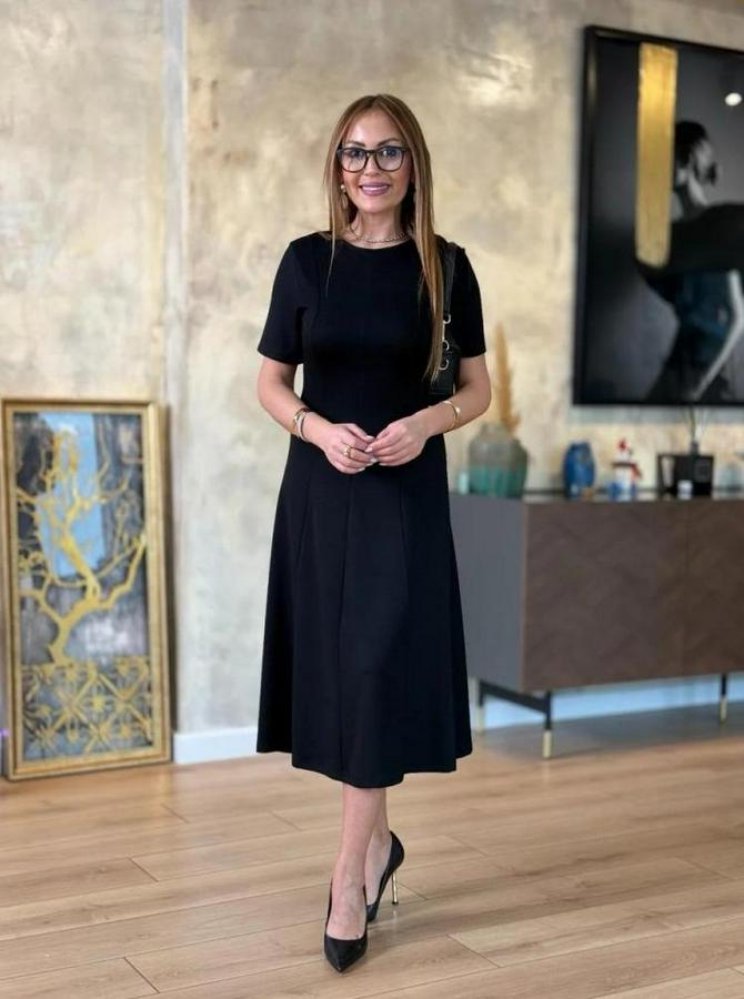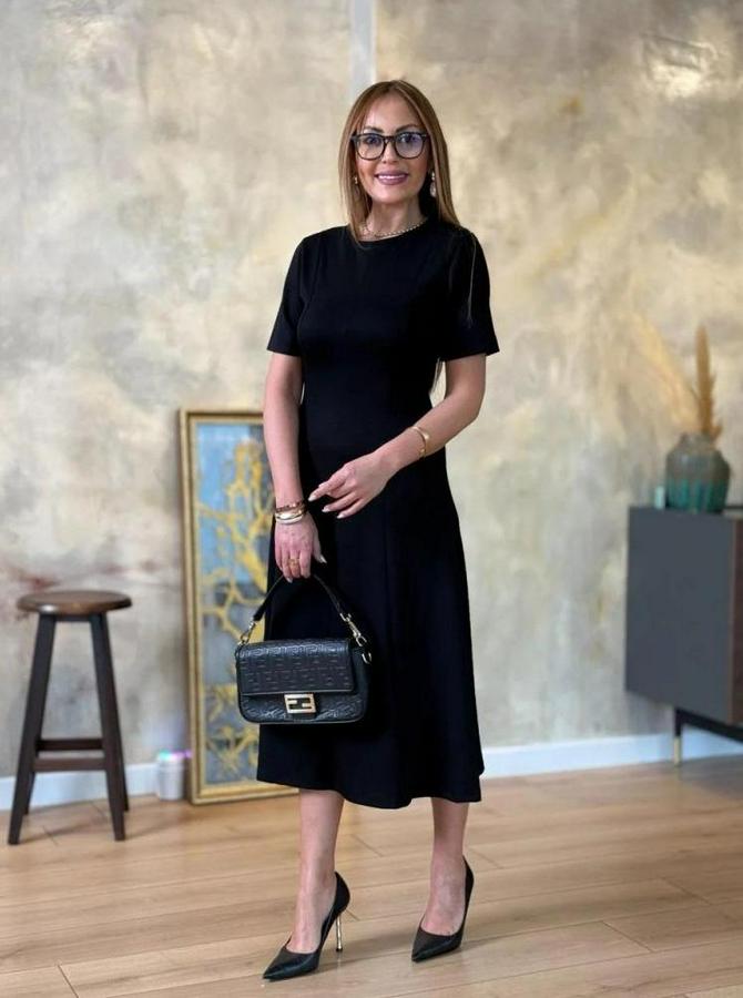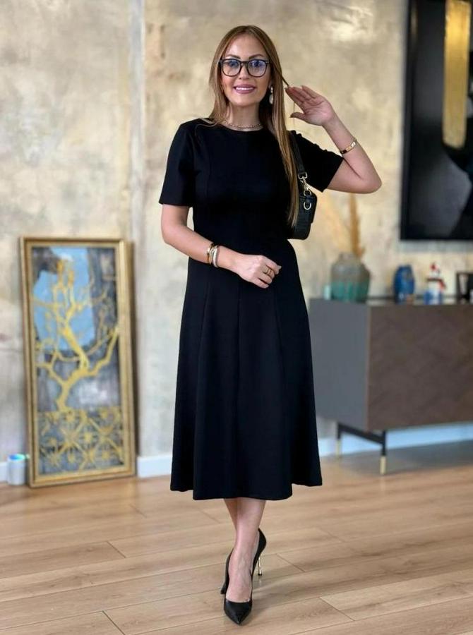 Kadın Kısa Kollu Bisiklet Yaka Midi Viskon Iki Iplik Elbise