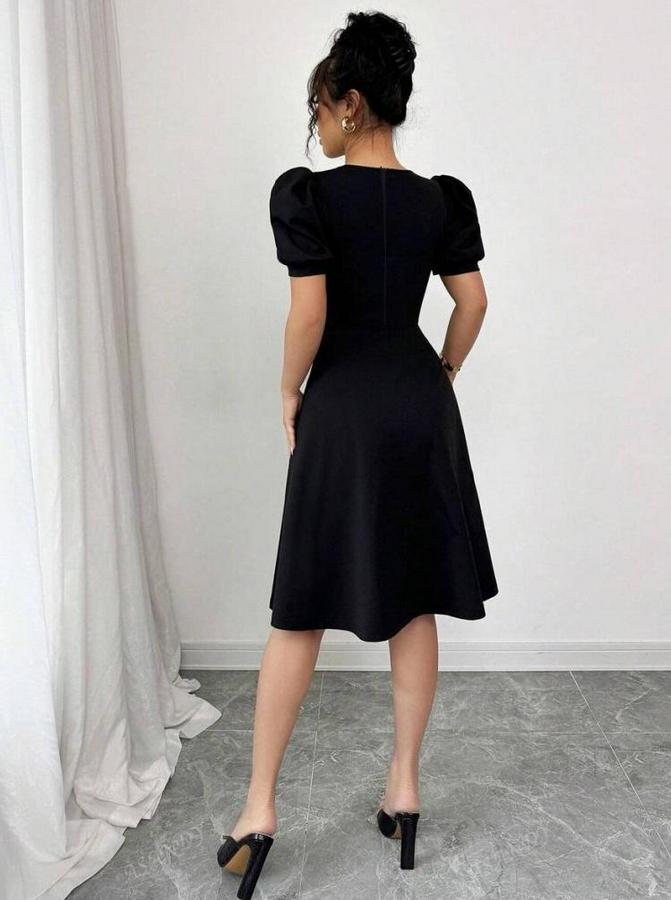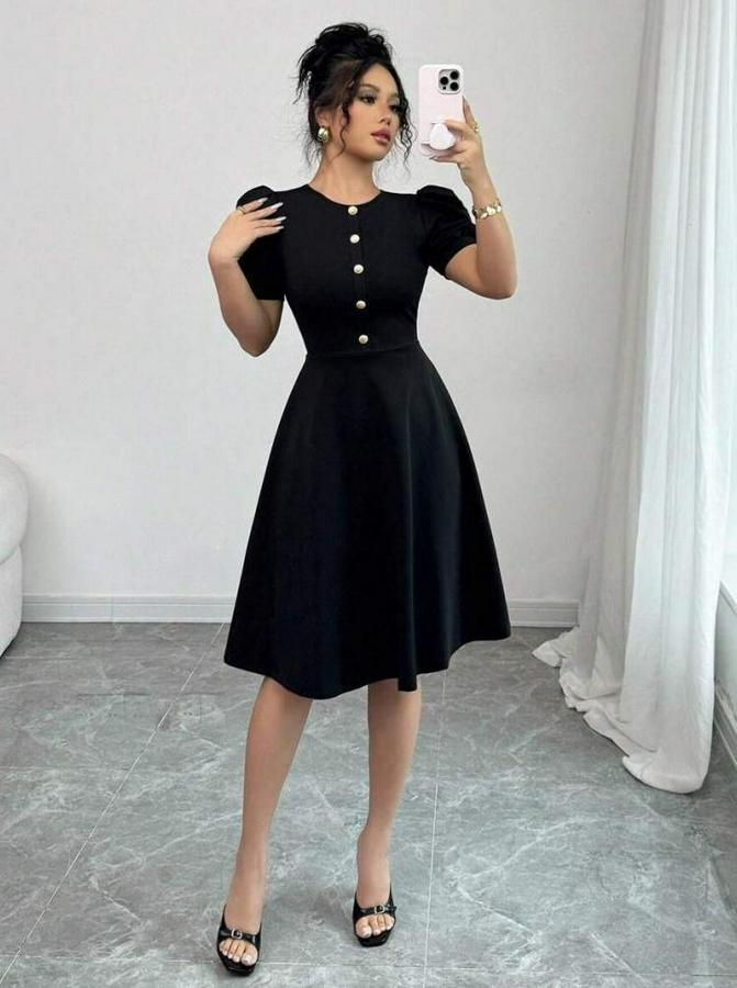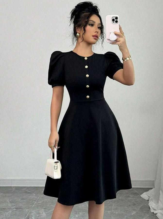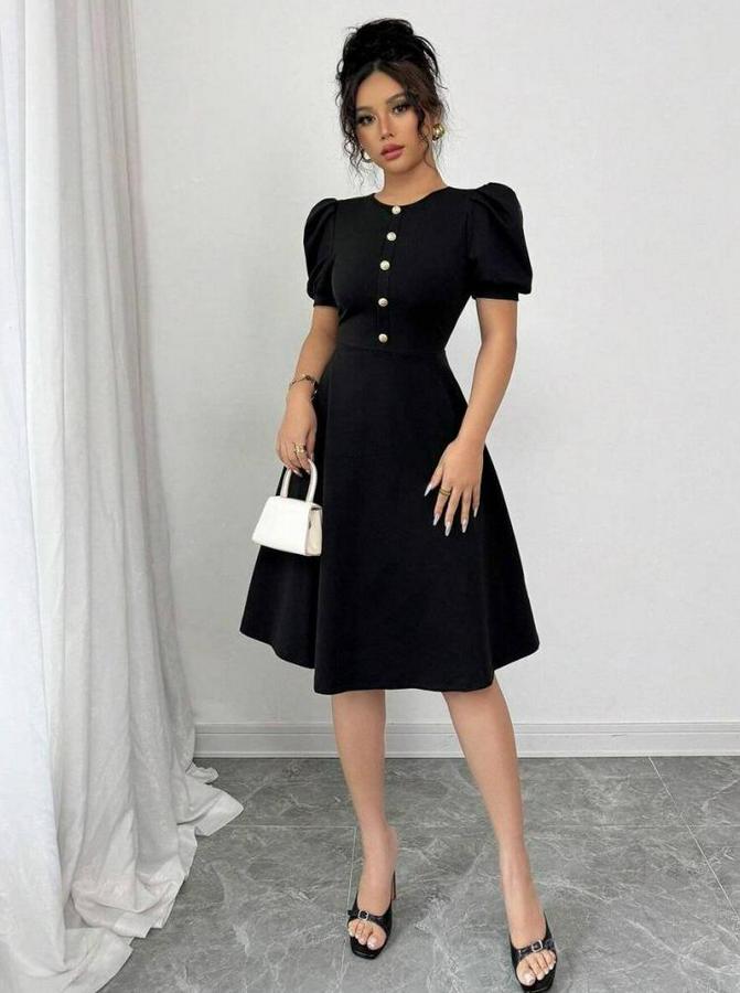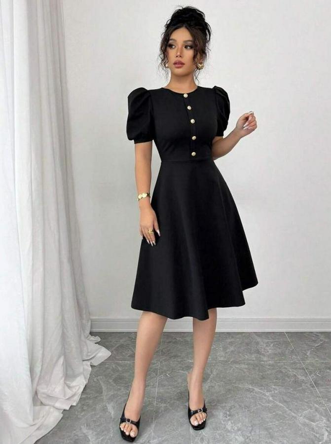 AnasayfaTüm ÜrünlerElbiseKısa Kollu Bisiklet Yaka Önden Düğmeli Ithal Krep Elbise