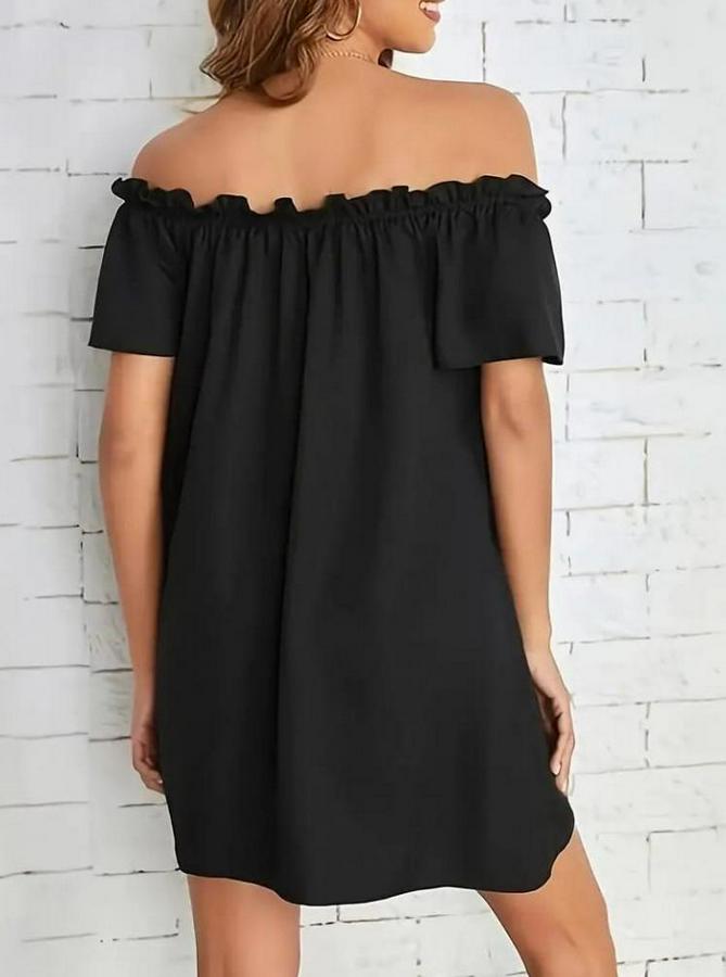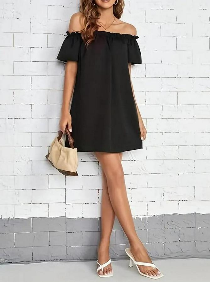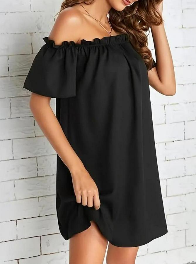 Kadın Kısa Kollu Fırfır Detay Madonna Yaka Mini Ithal Krep Elbise