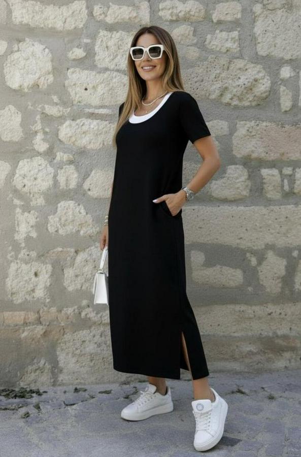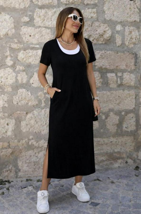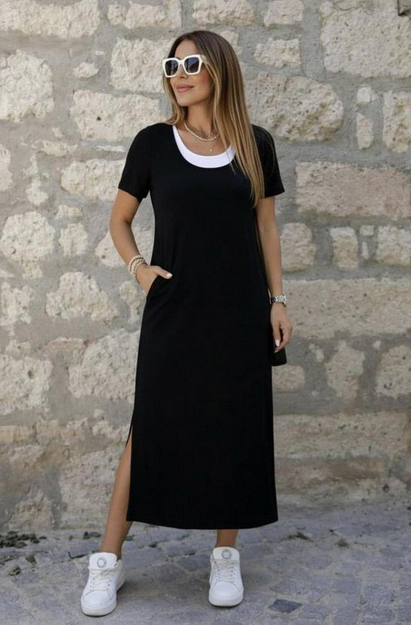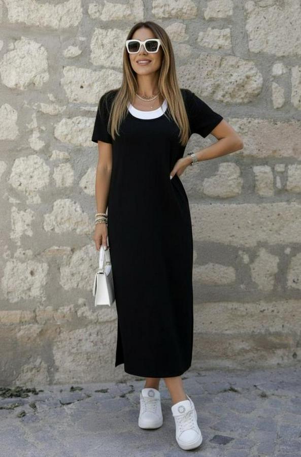 AnasayfaTüm ÜrünlerElbiseKısa Kollu Içi Atlet Görünümlü Yandan Yırtmaçlı Uzun Viskon Elbise