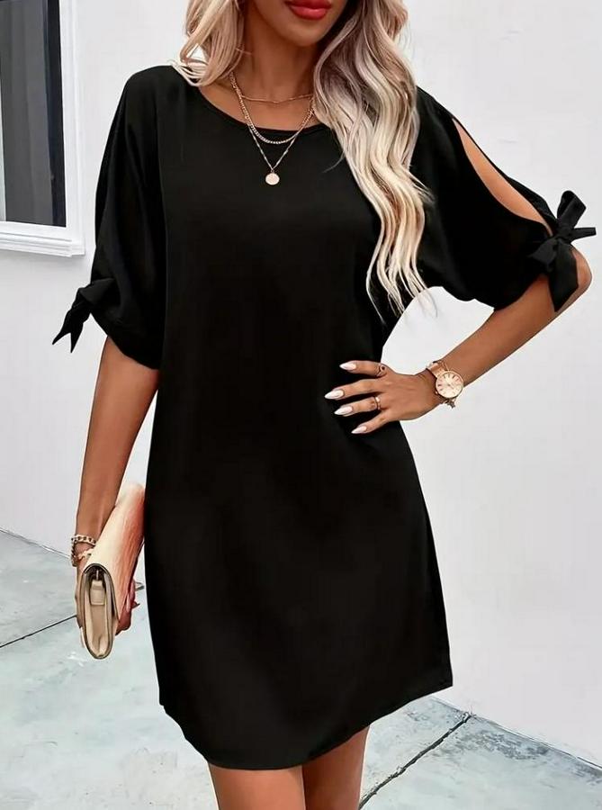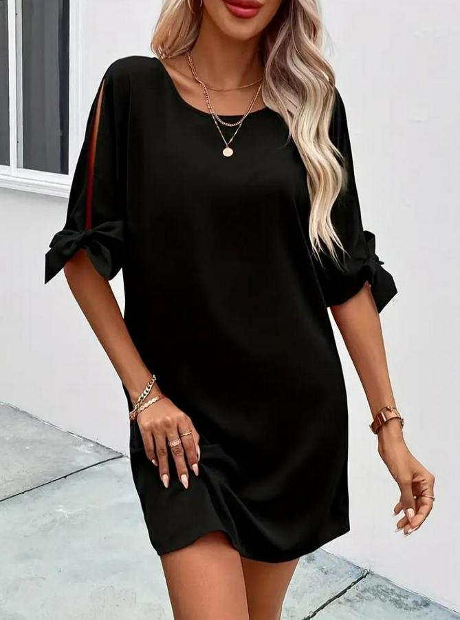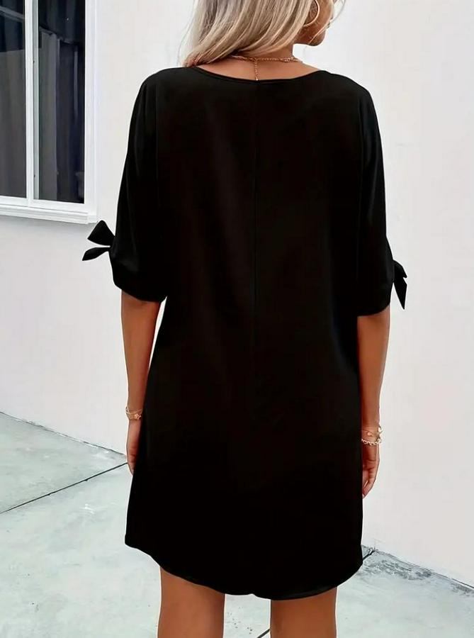 Kadın Kısa Kollu Kolu Bağlamalı Yakası Açık Janjan Elbise