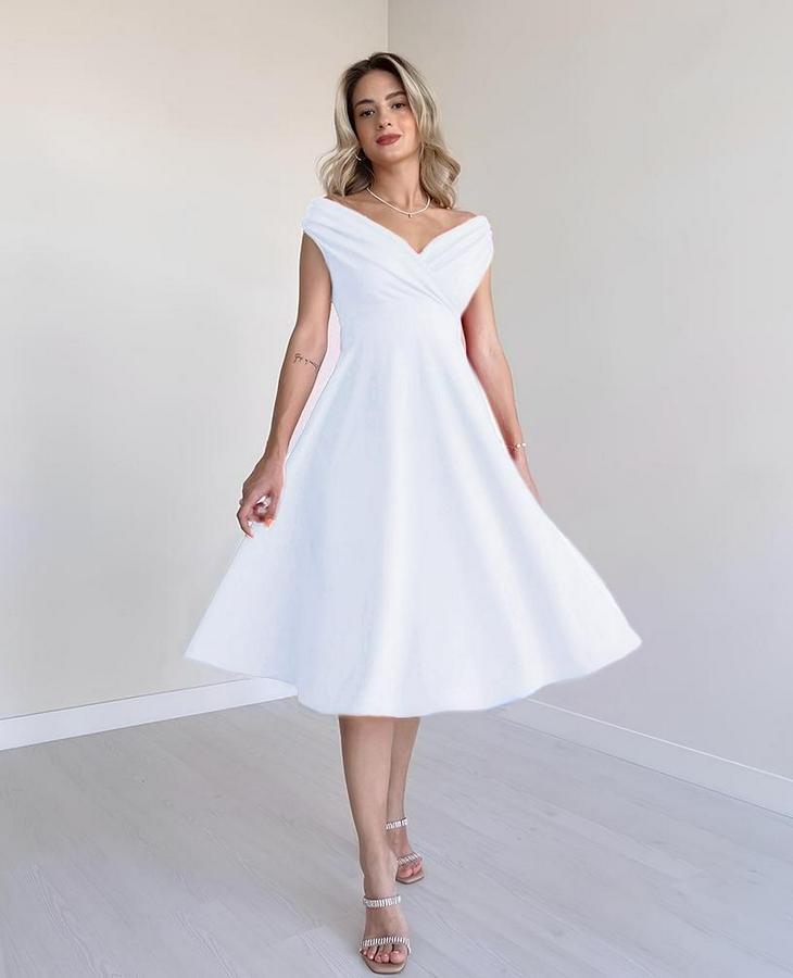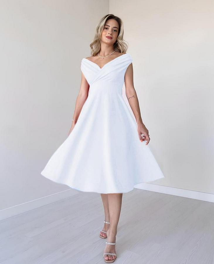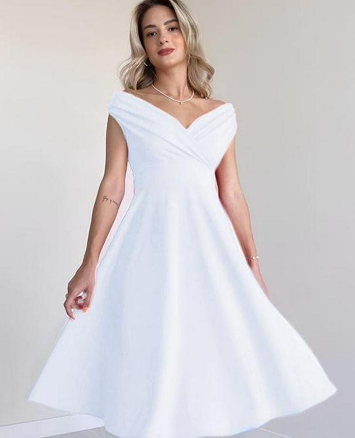 AnasayfaTüm ÜrünlerElbiseKısa Kollu Kruvaze Yaka Eteği Volanlı Krep Elbise