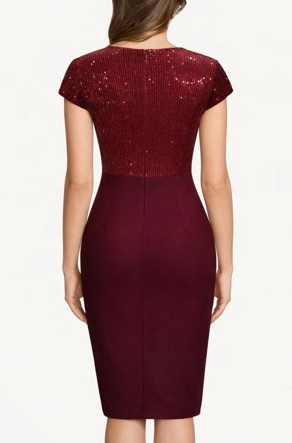 Kısa Kollu Kruvaze Yakalı Işıltı Detaylı Midi Ithal Krep Elbise