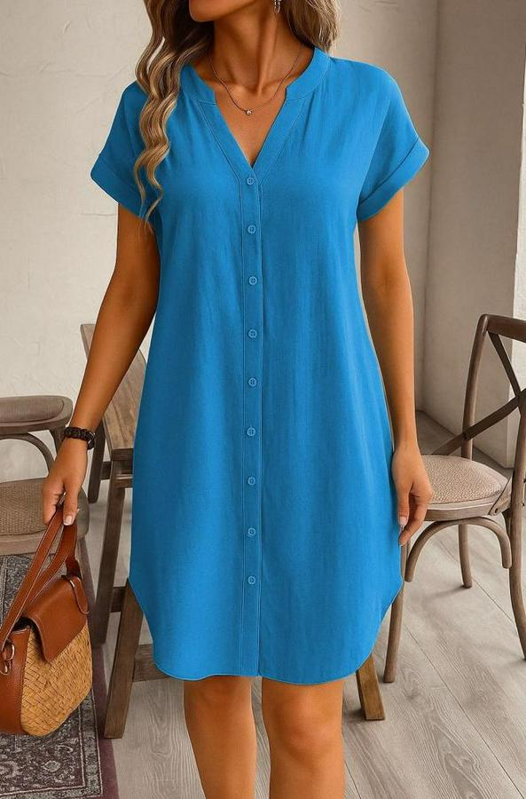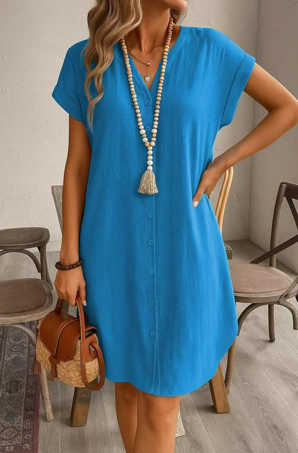 AnasayfaTüm ÜrünlerElbiseKısa Kollu Önden Düğmeli Ithal Keten Elbise
