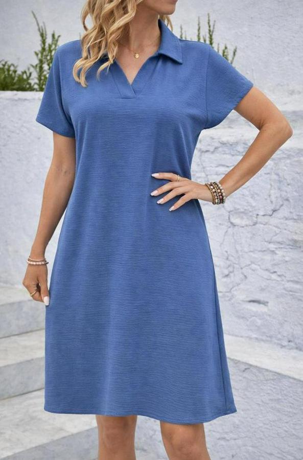 AnasayfaTüm ÜrünlerElbiseKısa Kollu V Yaka Aerobin Kumaş Diz Üstü Elbise