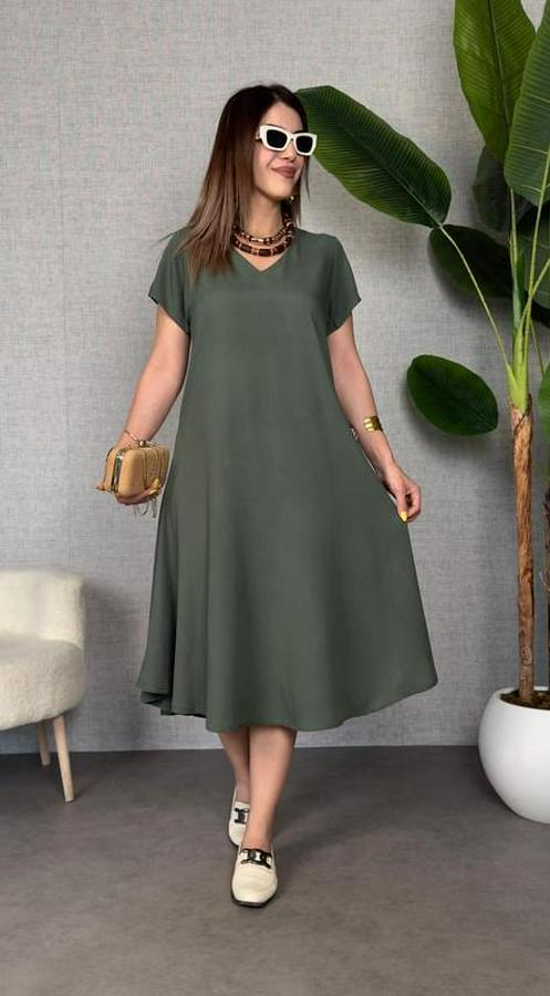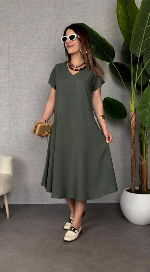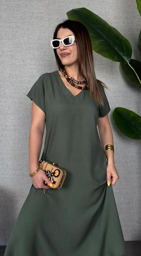 Kısa Kollu V Yaka Salaş Maxi Boy Elbise