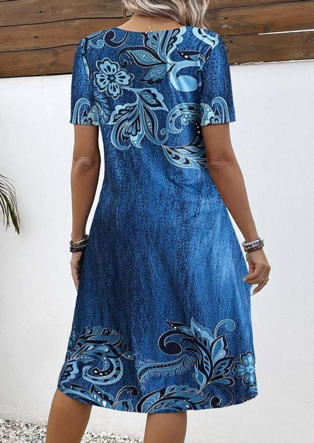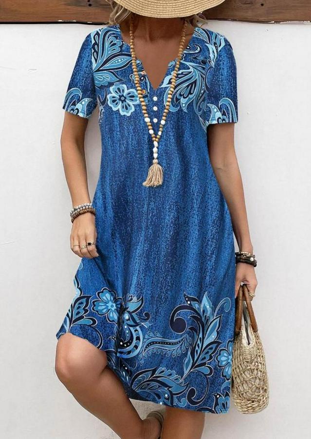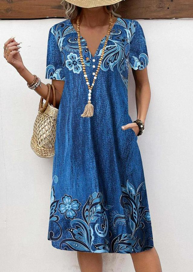 Kısa Kollu V Yakalı Çiçek Baskılı Midi Süprem Elbise