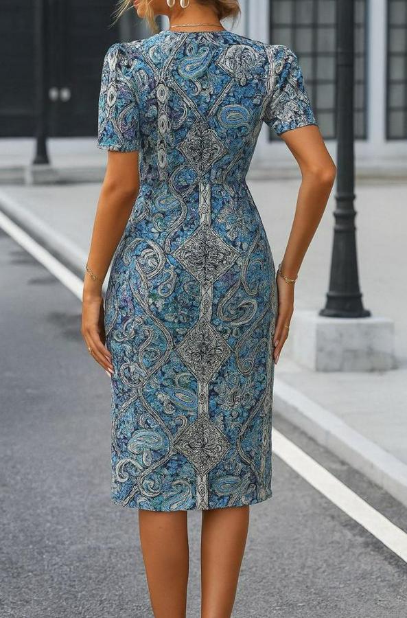 Kadın Kısa Kollu V Yakalı çiçek Desenli Midi Atlas Elbise