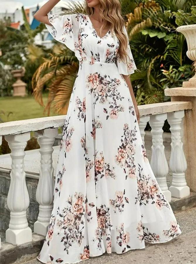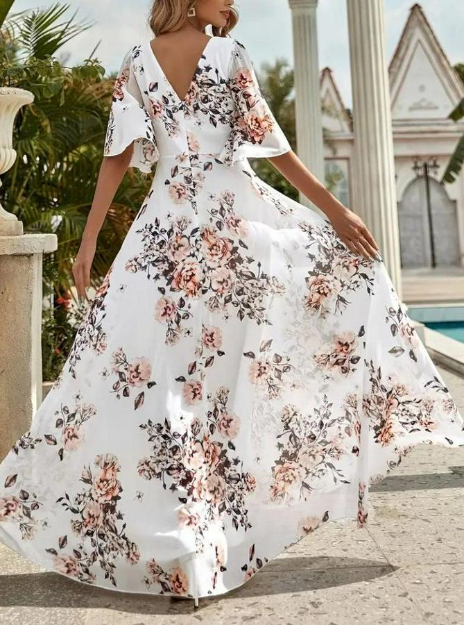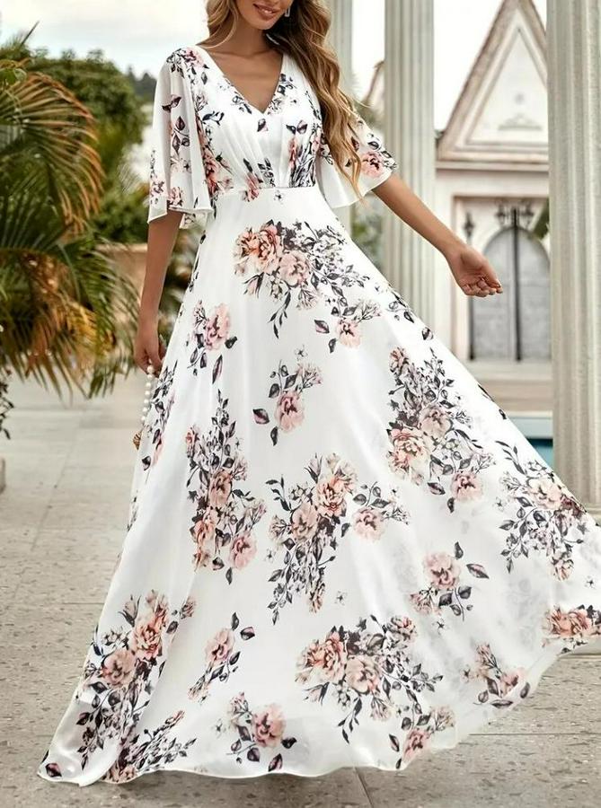 AnasayfaTüm ÜrünlerElbiseKısa Kollu V Yakalı Çiçek Desenli Süprem Elbise