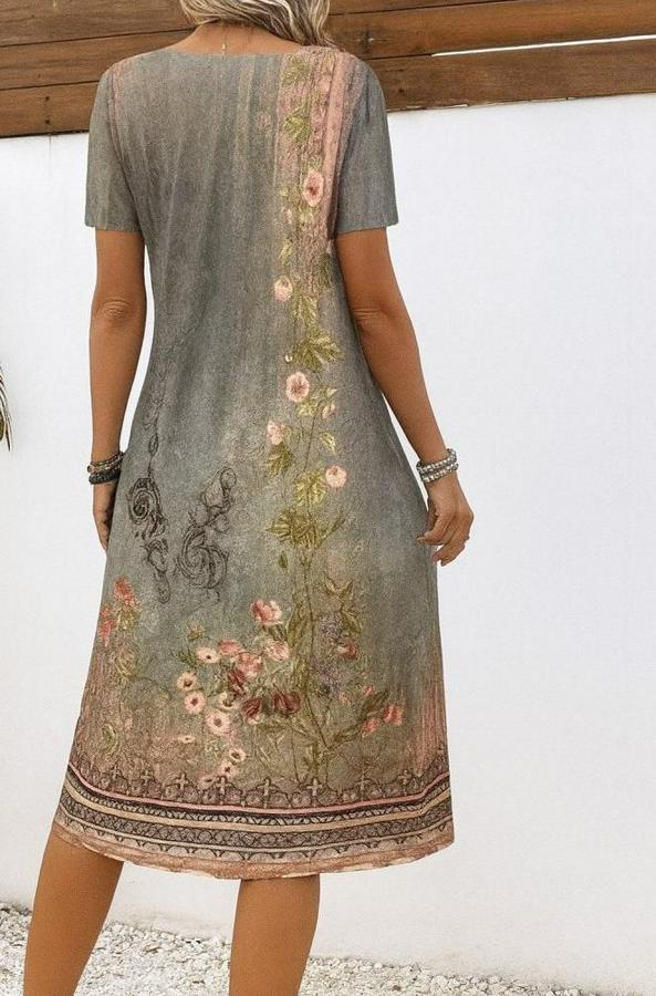 Kısa Kollu V Yakalı Desenli Süprem Elbise