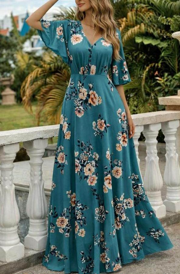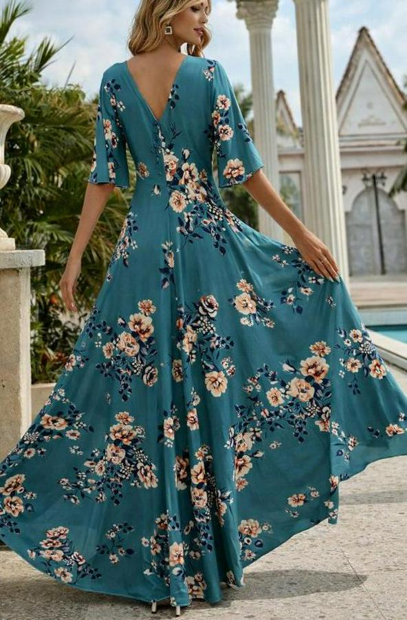 AnasayfaTüm ÜrünlerElbiseKısa Kollu V Yakalı Desenli Süprem Elbise