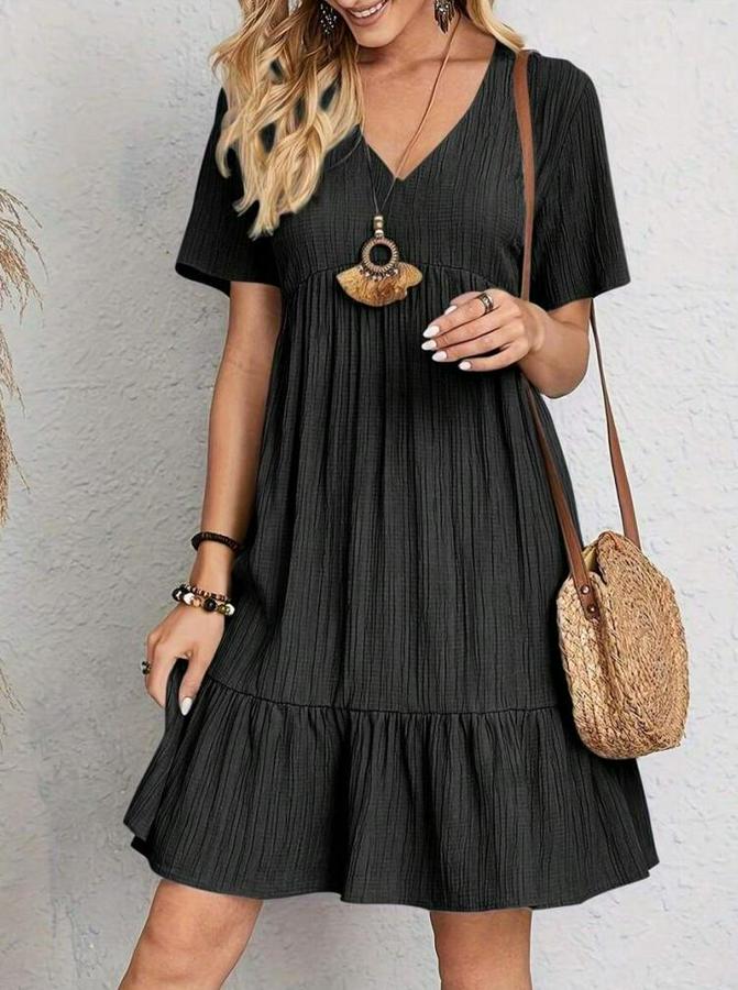 AnasayfaTüm ÜrünlerElbiseKısa Kollu V Yakalı Fırfırlı Bürümcük Elbise