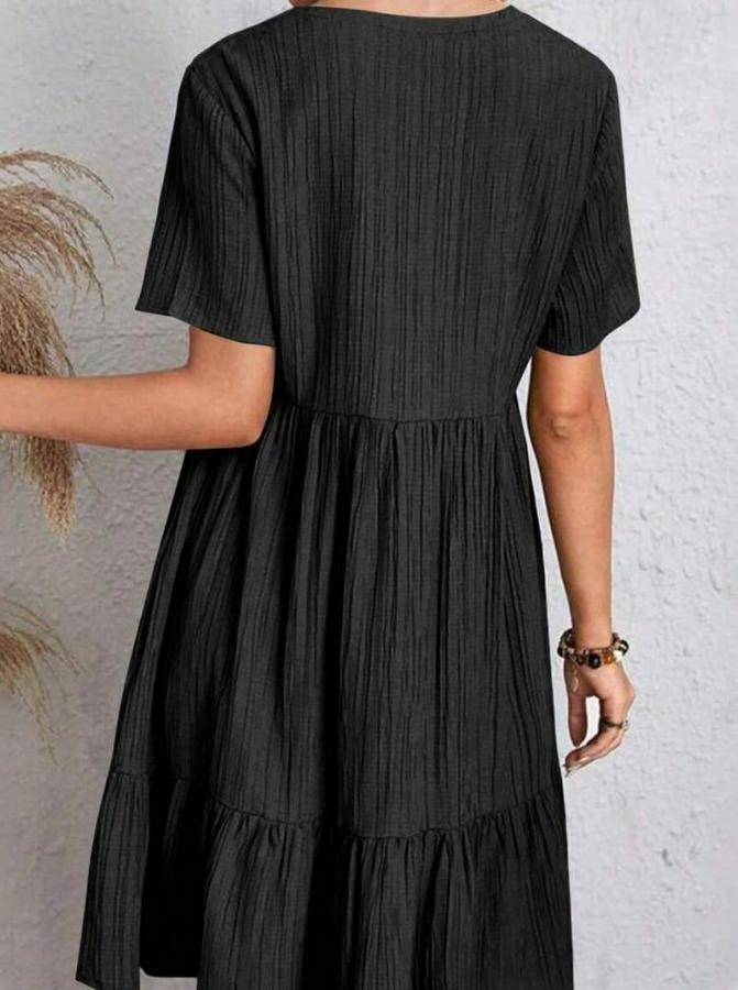 Kısa Kollu V Yakalı Fırfırlı Bürümcük Elbise