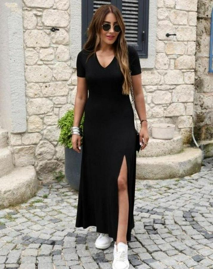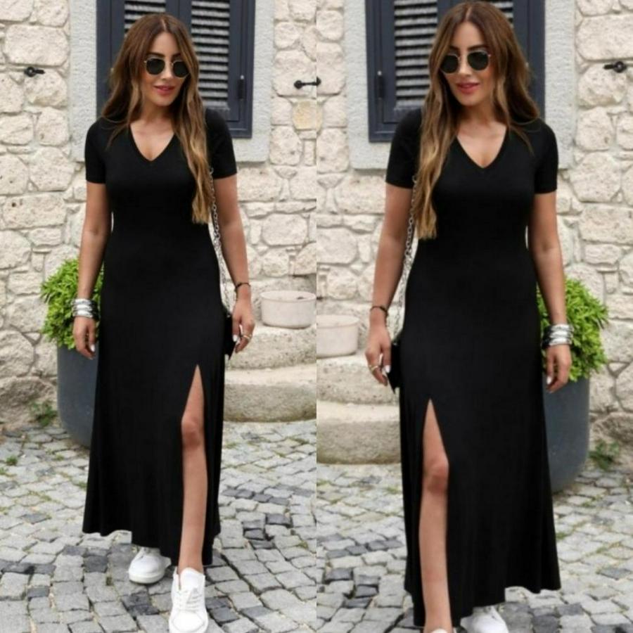 Kısa Kollu V Yakalı Maksi Boy Viskon Elbise