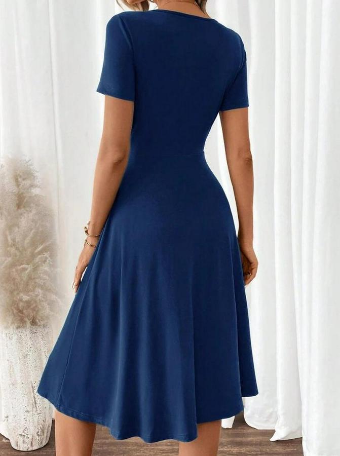 Kadın Kısa Kollu V Yakalı önden Düğmeli A Kesim Dokuma Elbise