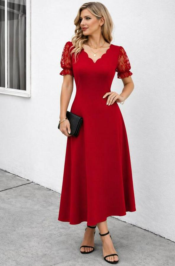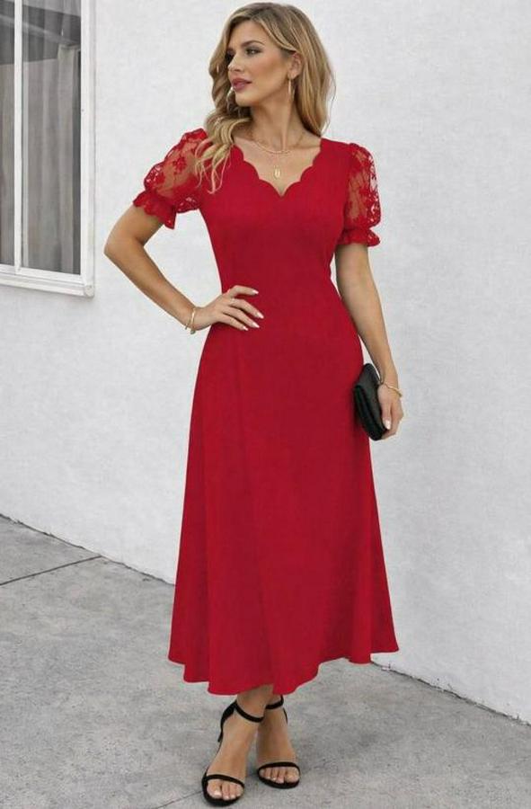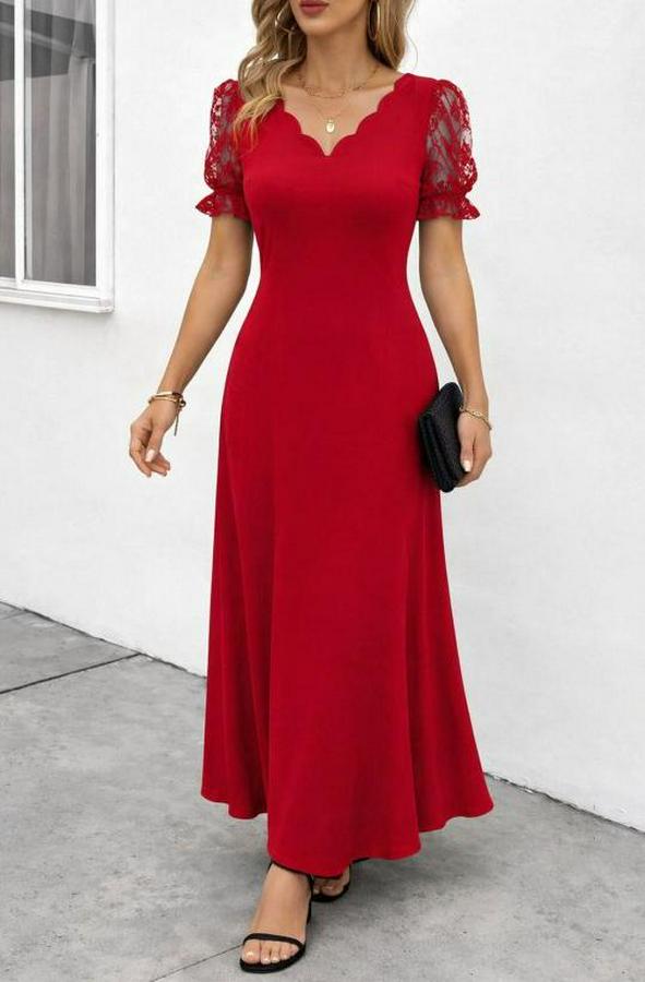 Kısa Kollu V Yakalı Uzun Janjan Elbise