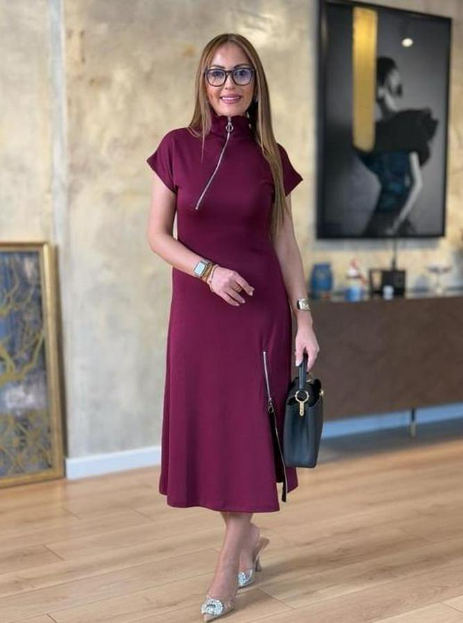 AnasayfaTüm ÜrünlerElbiseKısa Kollu Yakadan Ve Etekten Fermuarlı Midi Viskon Iki Iplik Elbise