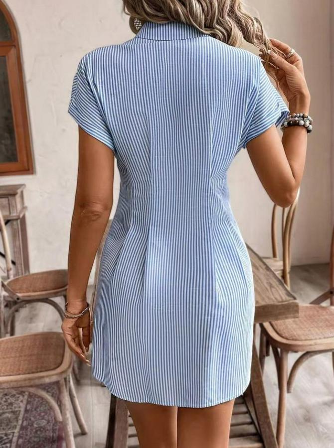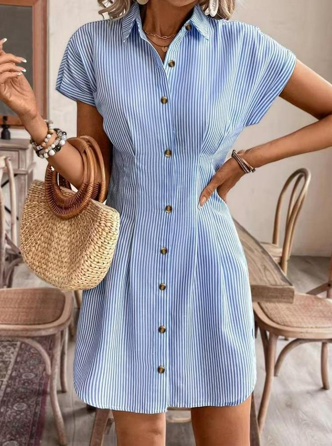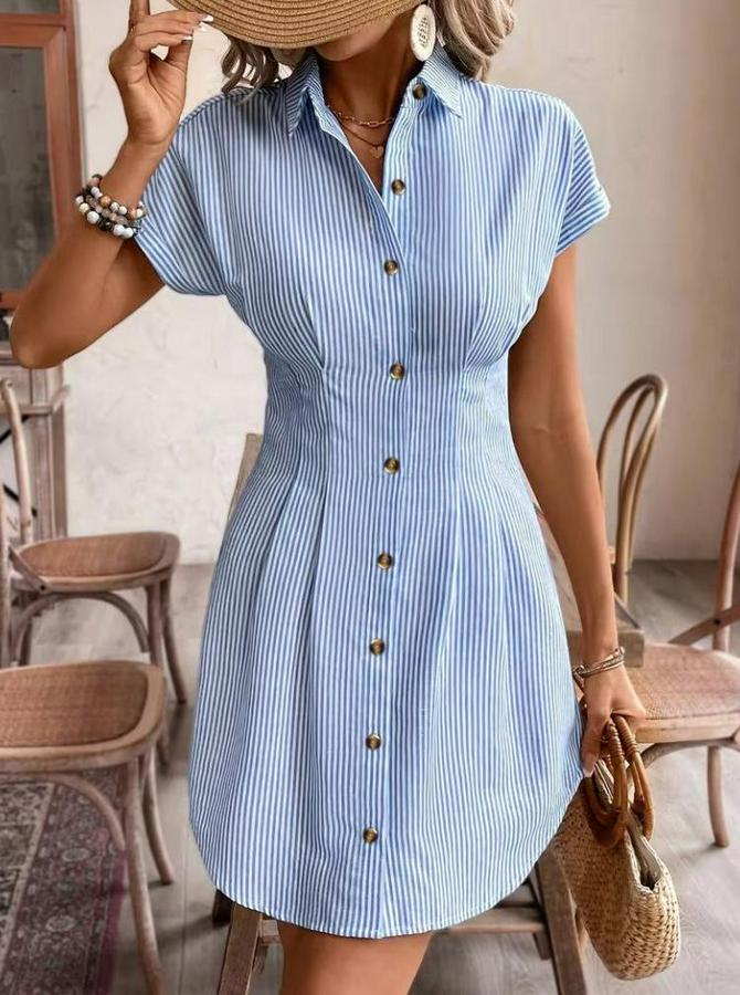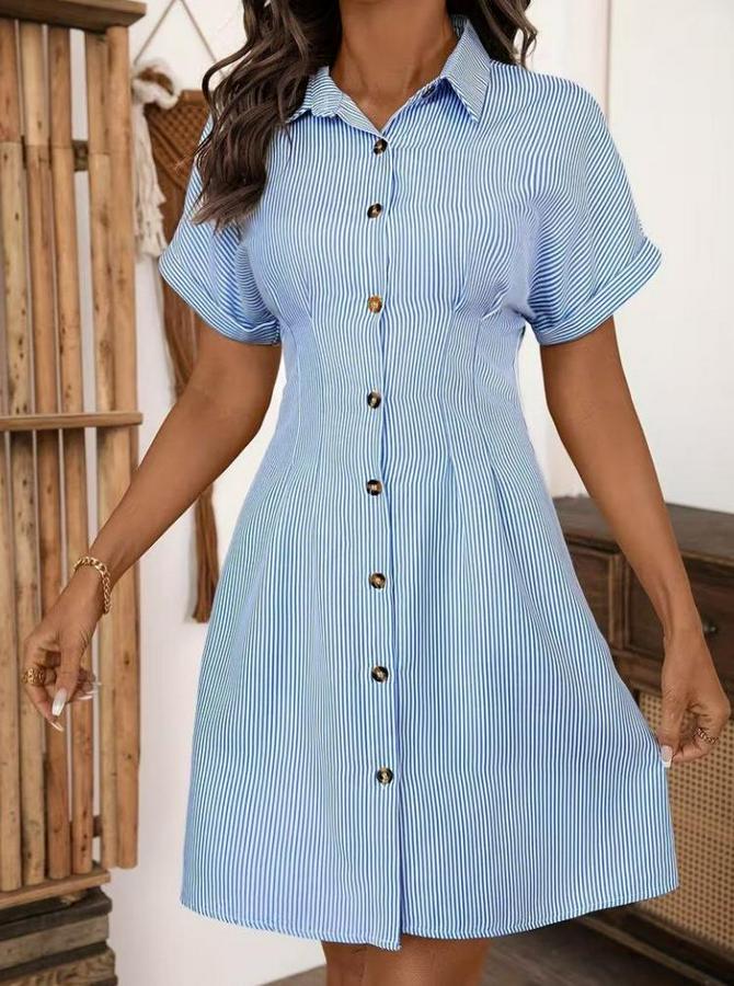 Kısa Kollu Yakalı Önden Düğmeli Kısa Trikoton Elbise
