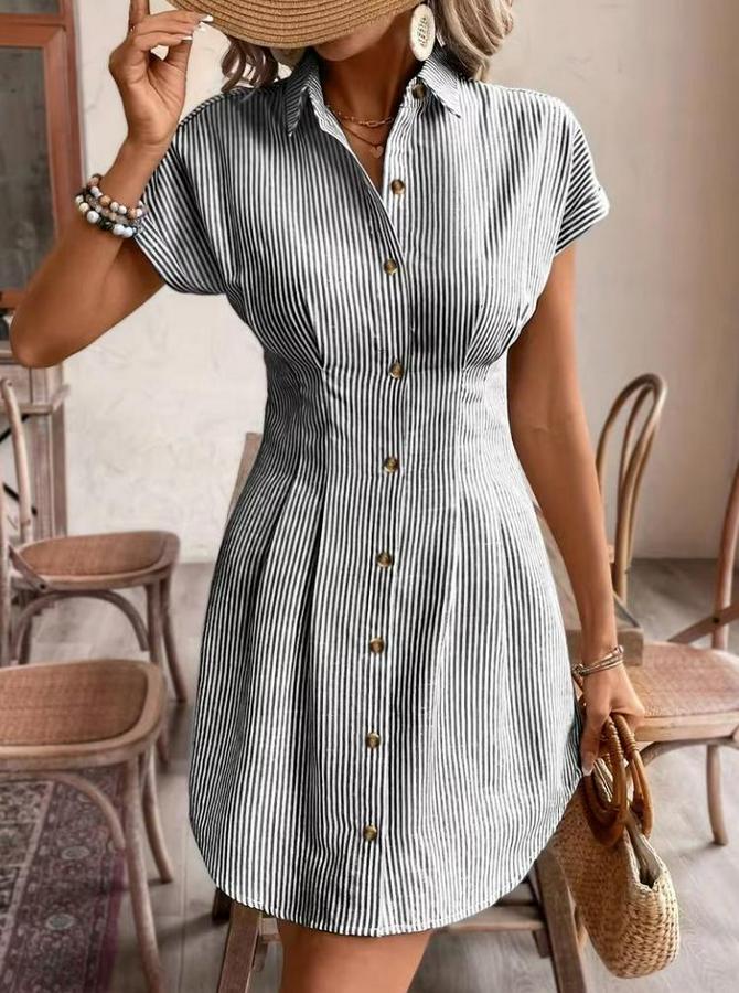 Kısa Kollu Yakalı Önden Düğmeli Kısa Trikoton Elbise