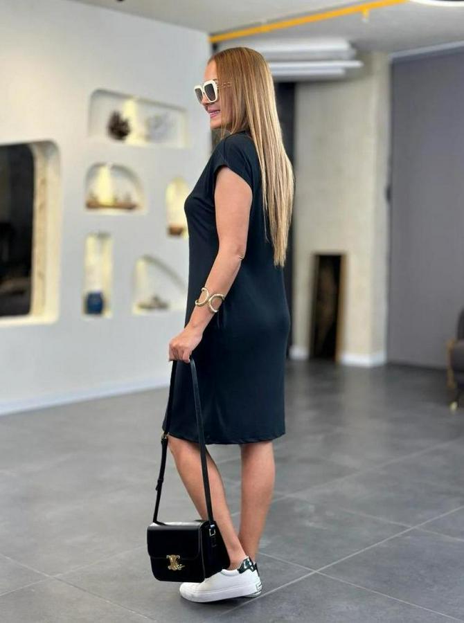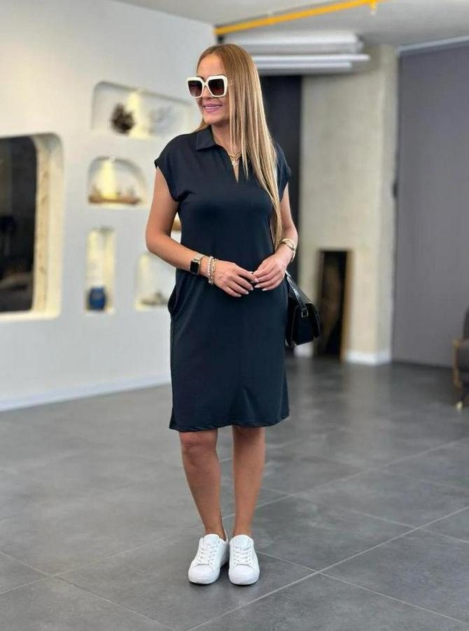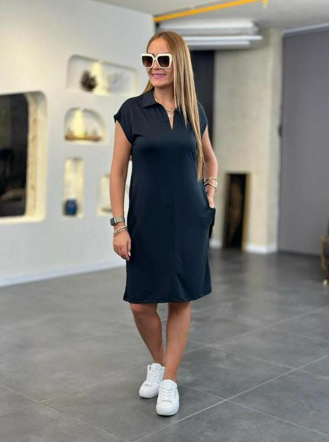 Kısa Kollu Yakalı Viskon Iki Iplik Elbise