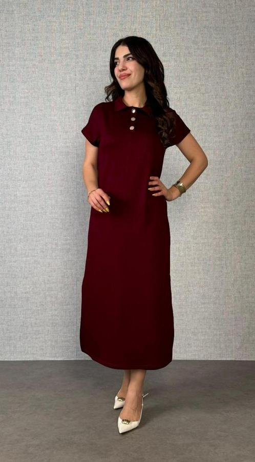 Kısa Kollu Yakalı Yandan Yırtmaçlı Viskon Iki Iplik Elbise