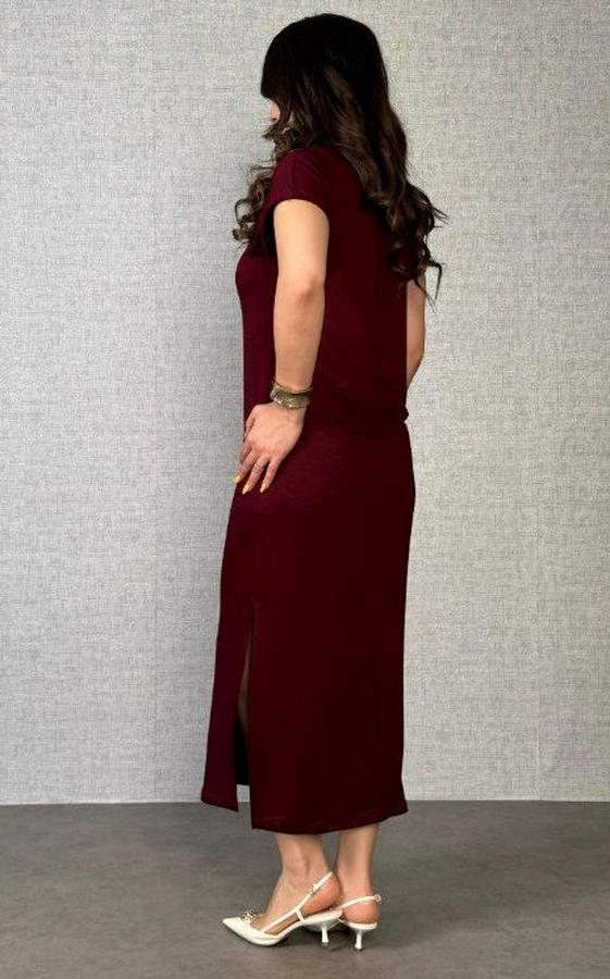 Kadın Kısa Kollu Yakalı Yandan Yırtmaçlı Viskon Iki Iplik Elbise