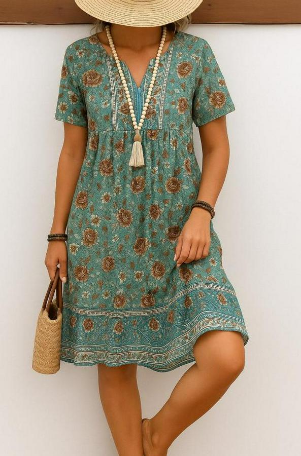 AnasayfaTüm ÜrünlerElbiseKısa Kollu Yakası Bağcıklı Önden Düğmeli Fırfır Desenli Süprem Elbise
