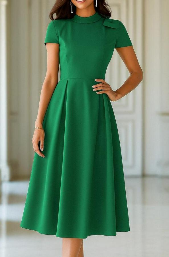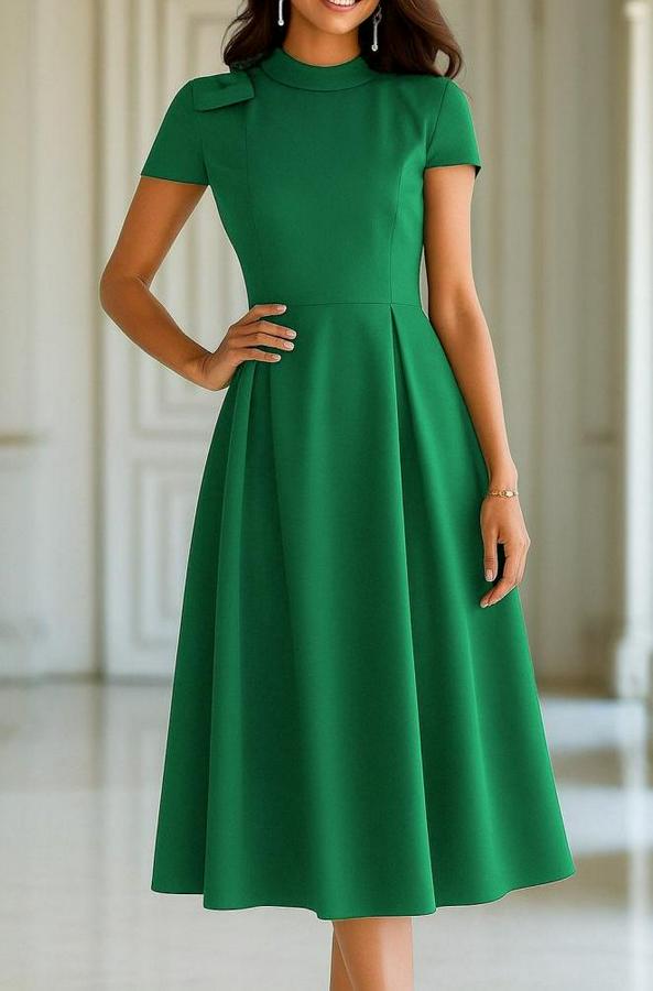 AnasayfaTüm ÜrünlerElbiseKısa Kollu Yarı Balıkçı Yaka Pileli Janjan Krep Midi Elbise