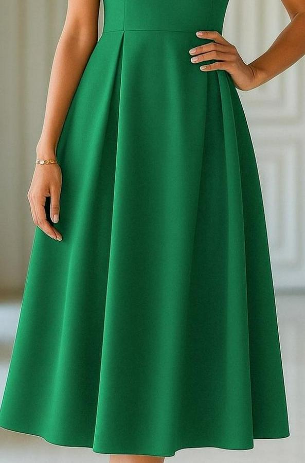 Kısa Kollu Yarı Balıkçı Yaka Pileli Janjan Krep Midi Elbise
