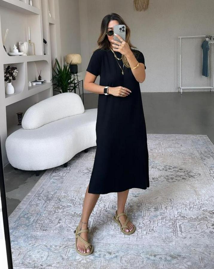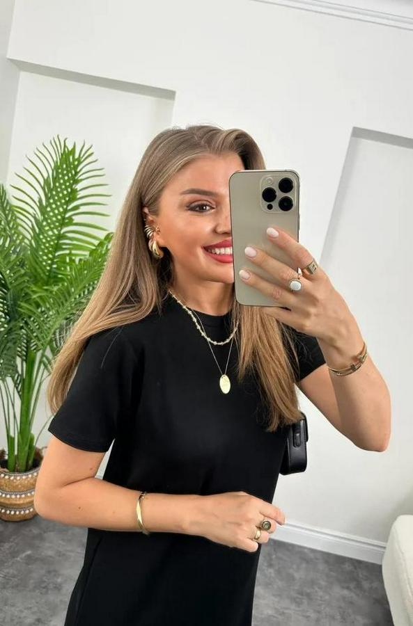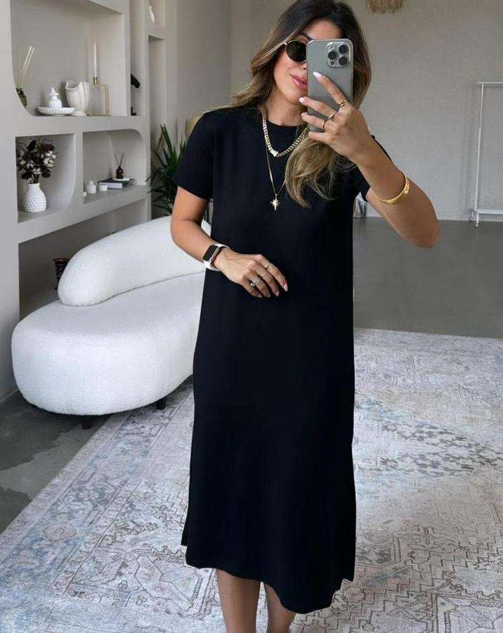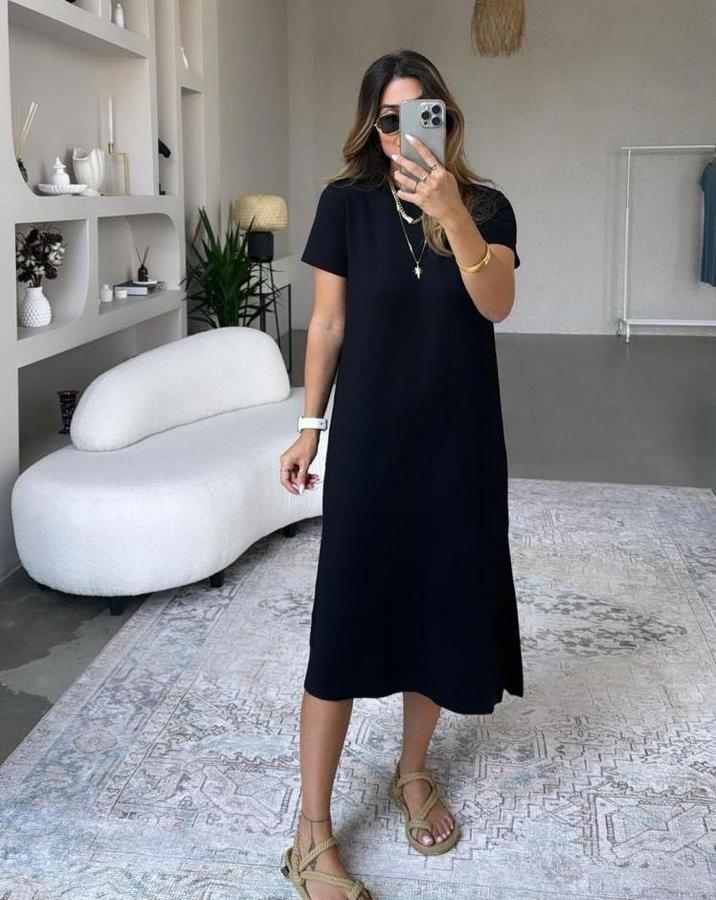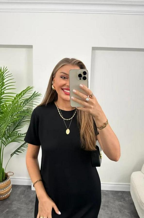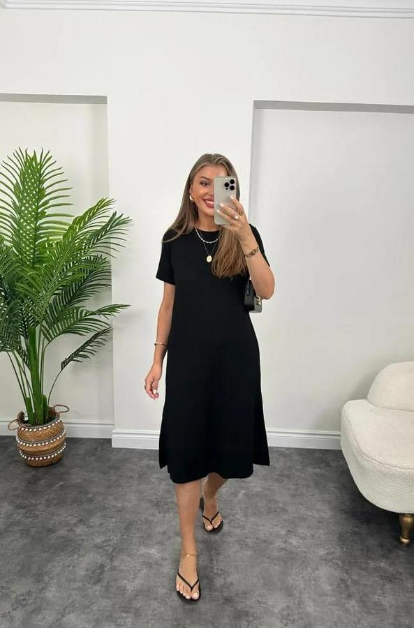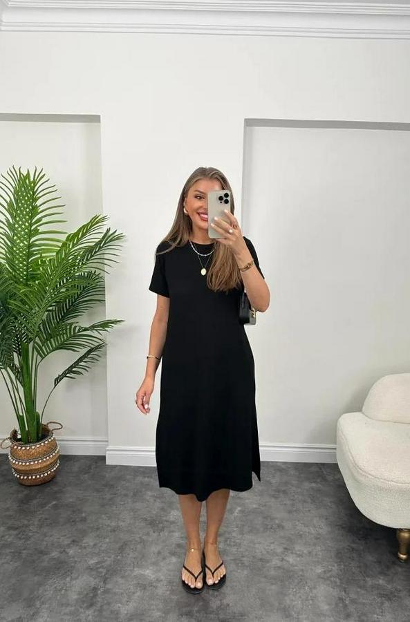 AnasayfaTüm ÜrünlerElbiseKısa Kollu Yırtmaç Detaylı Salaş Viskon Elbise