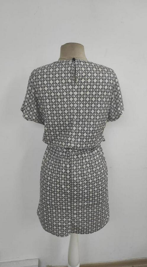 AnasayfaTüm ÜrünlerElbiseKısa Kollu Yuvarlak Yaka Beli Kuşaklı Geometrik Desenli Süprem Elbise