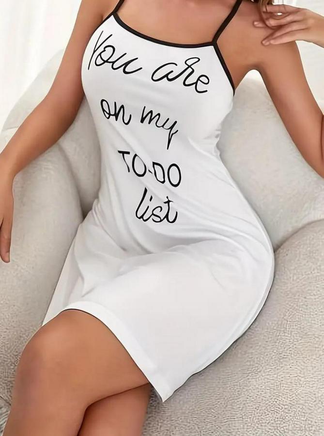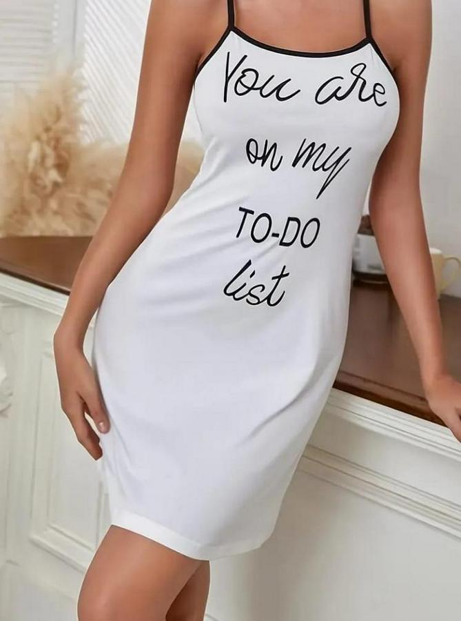 Kolsuz Askılı Sırt Çapraz Detay To Do List Baskı Süprem Gecelik Elbise