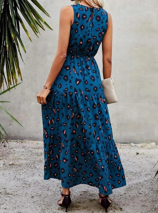 Kadın Kolsuz Bisiklet Yaka Beli Lastikli Desenli Süprem Elbise