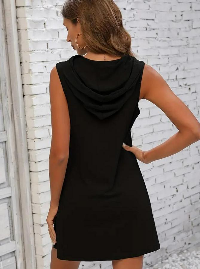 Kadın Kolsuz Kapşonlu Uzun Viskon Elbise