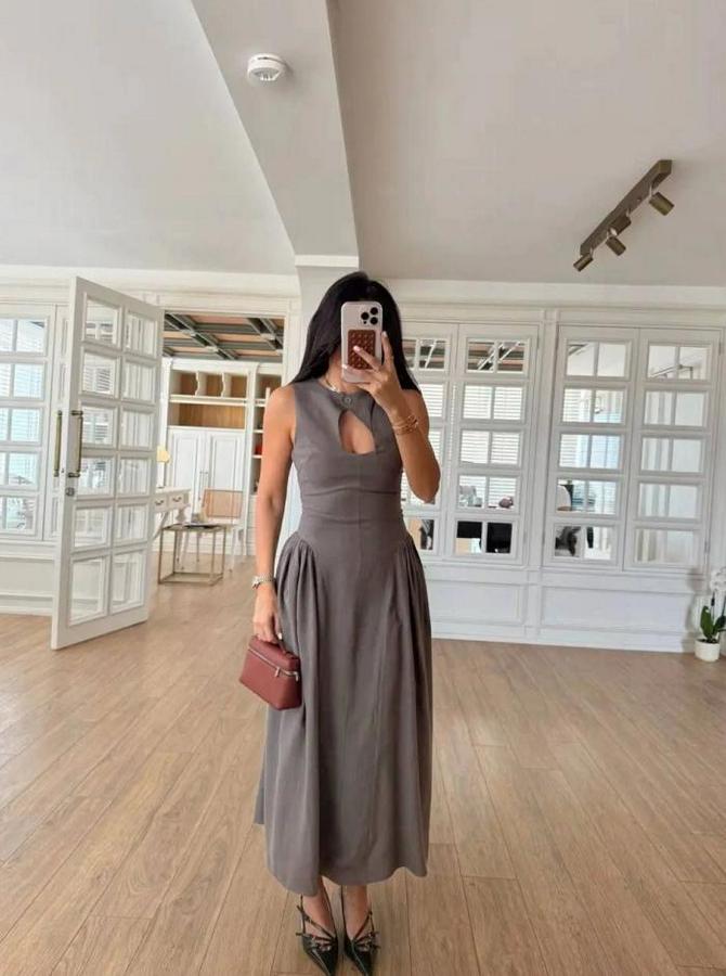 Kolsuz Uzun Kabardin Elbise - Gri