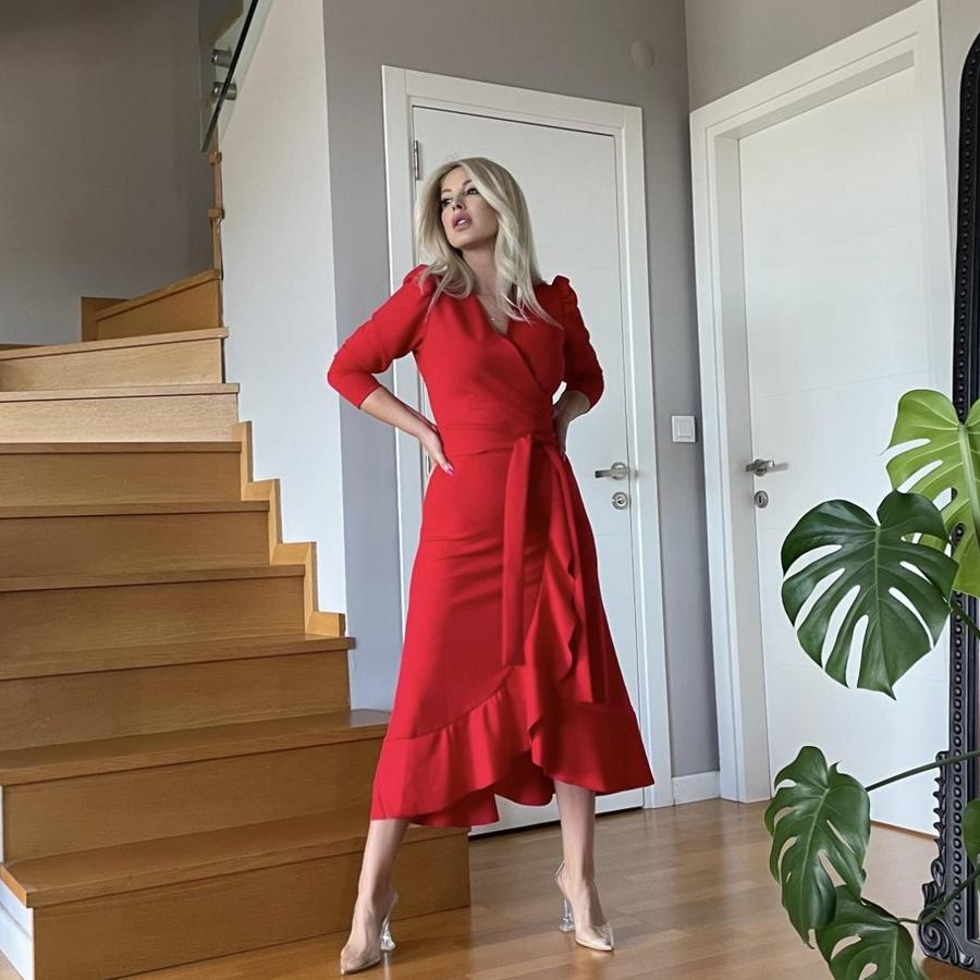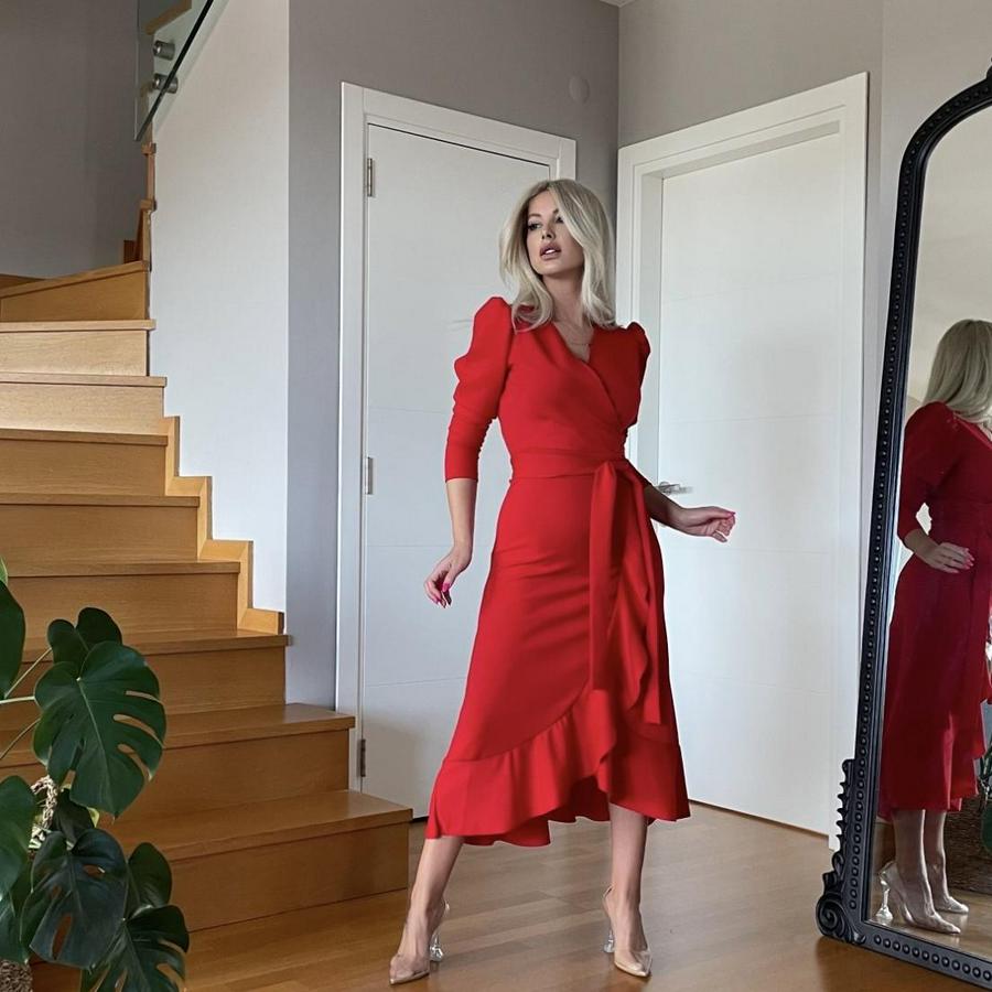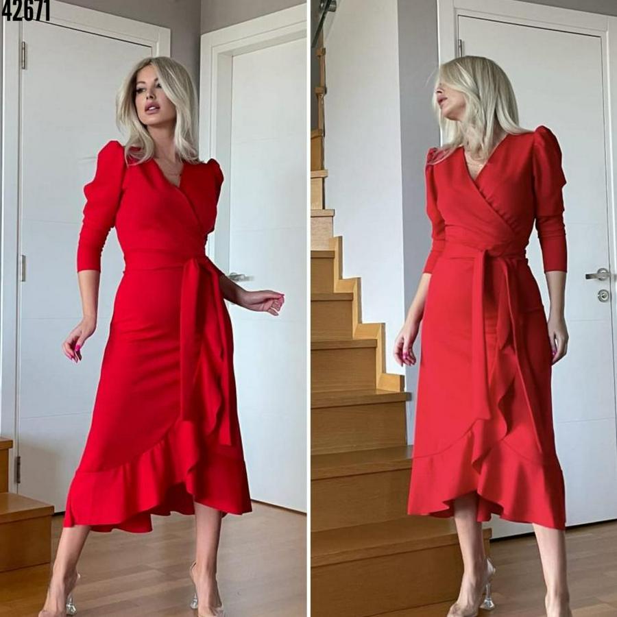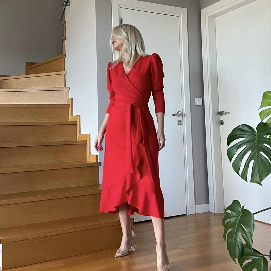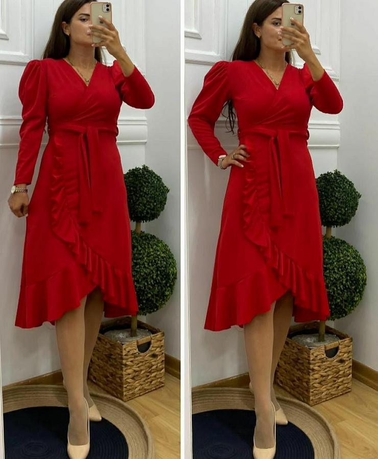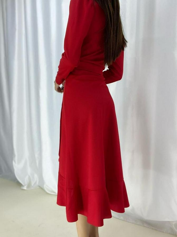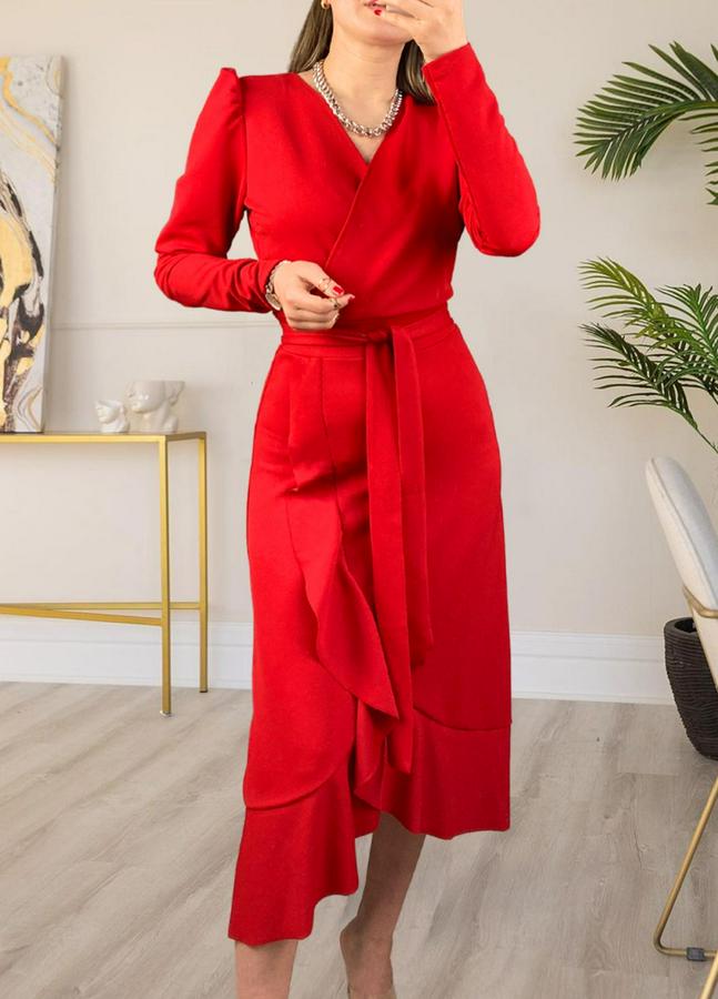AnasayfaTüm ÜrünlerElbiseKrep Kumaş Midi Boy Kuşaklı Uzunkol Elbise